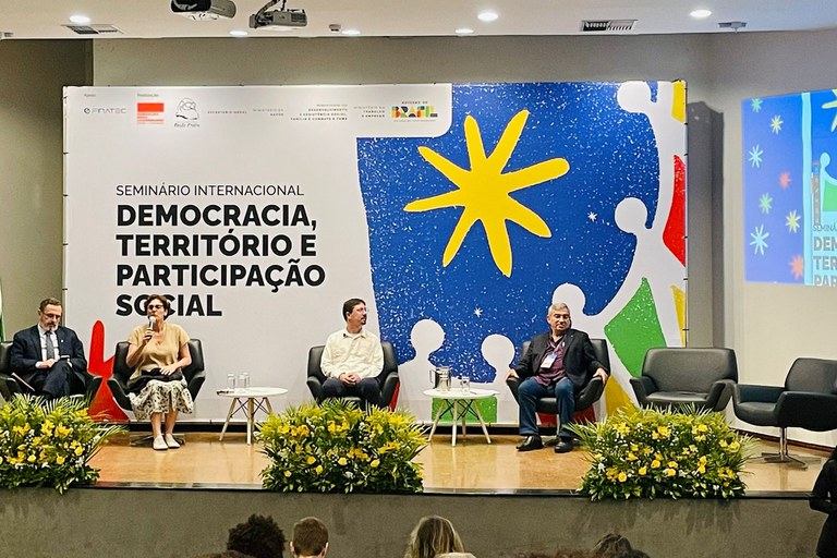 Na mesa “Democracia, território e educação popular: experiências de políticas públicas brasileiras”, a secretária apresentou programas da pasta como exemplos concretos dessa articulação.