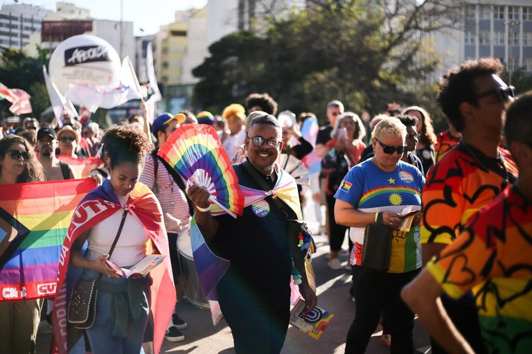 Representantes do MDS também estiveram presentes na Primeira Marcha Nacional de Trabalhadores e Trabalhadoras LGBTQIA+, na tarde desta sexta-feira (20.06), na Praça Roosevelt, região central de São Paulo. A Marcha foi organizada pela Central Única dos Trabalhadores (CUT). A finalidade foi reforçar a luta por direitos, inclusão e igualdade no mundo de trabalho para a população LGBTQIA+.