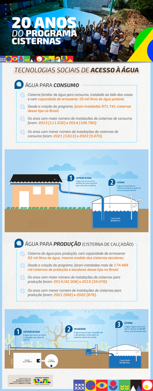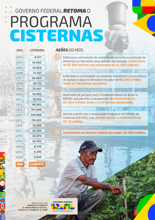 O governo anterior havia deixado R$ 2 milhões disponíveis no Orçamento da União para o Programa Cisternas, confirmando a tendência de extinção da iniciativa. Os anos com menos tecnologias implantadas na história do programa foram 2021 e 2022. Em janeiro, com o trabalho de recomposição dos recursos para a construção de cisternas, o orçamento saltou para R$ 500 milhões.