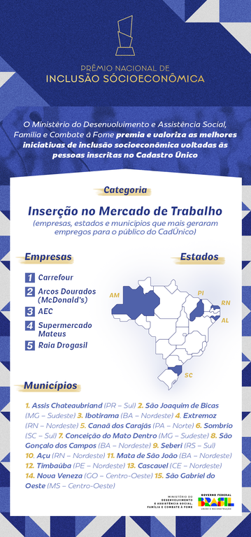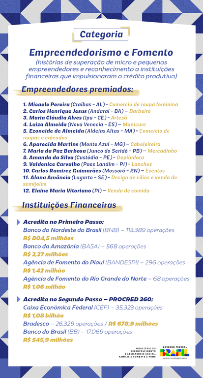 O evento reconheceu projetos voltados à geração de renda, qualificação profissional e fomento ao empreendedorismo para famílias inscritas no Cadastro Único, consolidando o compromisso do Governo Federal com a redução das desigualdades e a ascensão social.