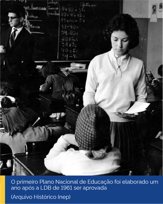 No ano de 1962, foi aprovado pelo Conselho Federal de Educação o primeiro Plano Nacional de Educação (PNE), elaborado sob a coordenação de Anísio Teixeira, que constitui um conjunto de metas quantitativas e qualitativas para serem cumpridas no prazo de oito anos. Não foi resultado de um projeto de lei, mas de uma iniciativa do MEC já na vigência da LDB de 1961. 1964 A Lei nº 4440, de 27 de outubro de 1964, instituiu o Salário-Educação devido pelas empresas vinculadas à Previdência Social. O Salário-Educação era representado pela importância correspondente ao custo do ensino primário dos filhos de seus empregados em idade de escolarização obrigatória e destinado a suplementar as despesas públicas com a educação elementar.
