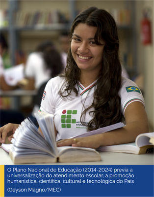 A Lei nº 13.005, de 25 de junho de 2014, aprovou o Plano Nacional de Educação, com diretrizes, metas e estratégicas para a educação para o prazo de dez anos. Estabeleceu 20 metas fundamentadas em diagnósticos abrangentes da educação nacional, de modo a contemplar os desafios mais urgentes em termos de inclusão, equidade e qualidade de todas as etapas e modalidades da educação. A meta 20 do Plano determinou a ampliação do investimento público em educação púbica de forma a atingir, no mínimo, 7% do PIB do País no quinto ano de vigência da Lei que o instituiu e, no mínimo, o equivalente a 10% do PIB no final do decênio. 2015