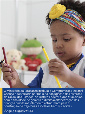 O Compromisso Nacional Criança Alfabetizada busca, em regime de colaboração entre a União, os estados, o Distrito Federal e os municípios, garantir a alfabetização de todas as crianças do Brasil até o final do 2º ano do ensino fundamental, além da recuperação das aprendizagens das crianças do 3º, 4º e 5º ano afetadas pela pandemia. A Pesquisa Alfabetiza Brasil — realizada pelo Instituto Nacional de Estudos e Pesquisas Educacionais Anísio Teixeira (Inep/MEC) em 2023 — definiu o ponto de corte para a alfabetização em 743 pontos na escala do Sistema de Avaliação da Educação Básica (Saeb). Isso permitiu a definição do Indicador Criança Alfabetizada e o estabelecimento de metas anuais para atingir a alfabetização de todas as crianças até 2030. Essa iniciativa é fundamental para monitorar e avaliar a qualidade da alfabetização e o Compromisso, assim como a implementação dos sistemas estaduais, em articulação com o Inep/MEC, que divulgará em 2024 os primeiros resultados nacionais censitários de aprendizagem ao final do 2º ano.