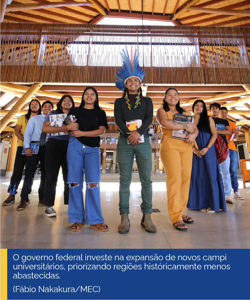 Qualidade, equidade e sustentabilidade são os pilares da Política Nacional de Educação Superior, que guiam o Ministério da Educação na direção da regulação, supervisão e avaliação das instituições de educação superior e dos cursos de graduação e pós-graduação, com vistas à construção de um país mais desenvolvido, justo e inclusivo. Nesta perspectiva, o MEC trabalha para expandir e democratizar o acesso dos brasileiros ao ensino superior, ampliando a oferta de campi e de vagas, bem como a qualidade de ensino, promovendo a permanência dos que mais precisam e garantindo oportunidade de uma educação superior de excelência para todos. O governo federal lançou o Novo PAC para a Educação Superior, garantindo a melhoria dos processos seletivos, a ampliação dos programas de assistência e mais oportunidades para todos. Com esses avanços, o MEC atua para transformar o futuro educacional e social do Brasil, e garantir que nenhum estudante em situação de vulnerabilidade desista de seu sonho de cursar a faculdade.