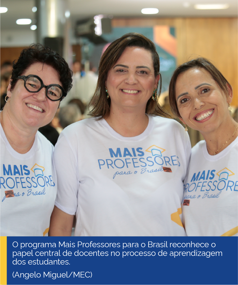 O programa Mais Professores para o Brasil foi construído em reconhecimento ao papel central dos docentes no processo de aprendizagem dos estudantes e no sucesso das políticas educacionais. Nesta perspectiva, o Mais Professores vai destinar bolsas de incentivo, tanto durante a graduação quanto após a formação acadêmica. Para o MEC, investir na formação e valorização dos professores é essencial para promover o desenvolvimento dos estudantes, preparando-os para superar as desigualdades sociais e fortalecer a democracia. Além de motivar o ingresso na carreira do magistério, a proposta visa assegurar a conclusão dos cursos de licenciatura e estimular o desenvolvimento profissional, com melhoria na seleção de professores, concursos públicos e cursos gratuitos para a formação docente.