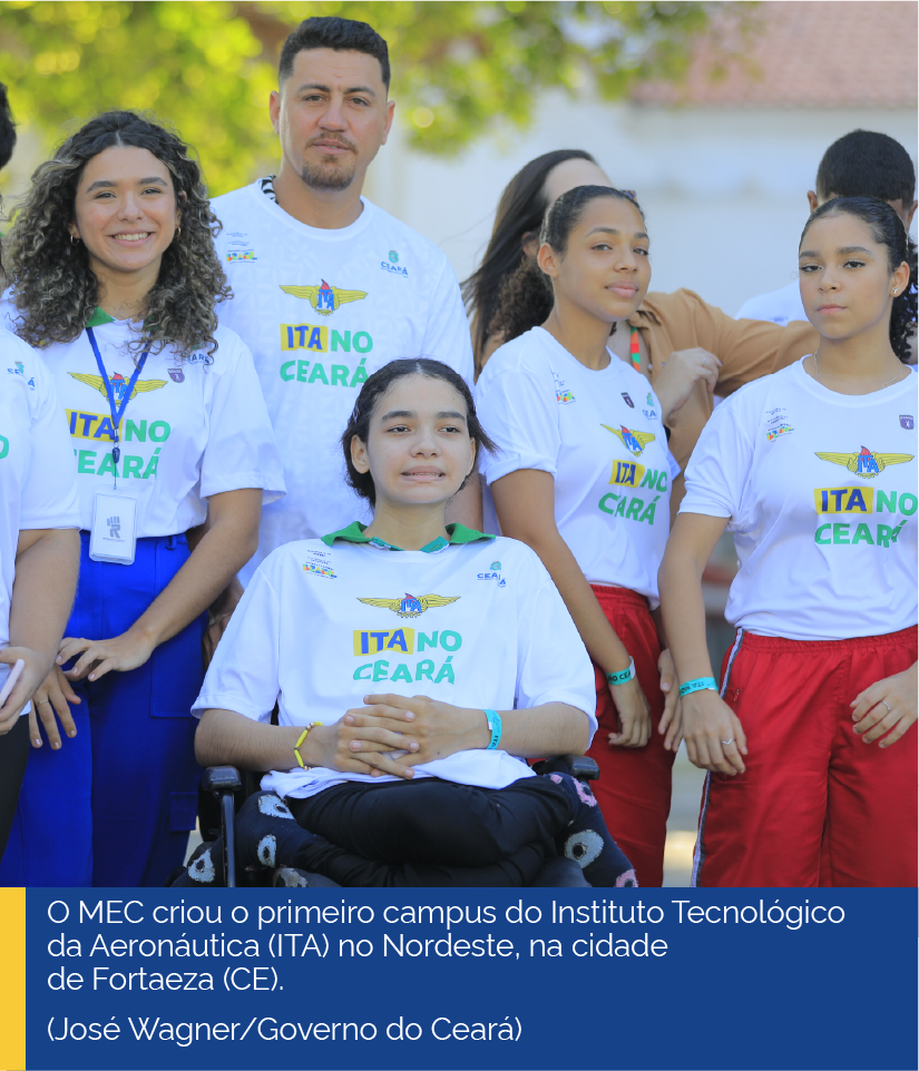 Uma unidade do Instituto Tecnológico de Aeronáutica (ITA) está em construção no Ceará, em Fortaleza, e é a primeira da instituição fora de São José dos Campos (SP). O ITA Ceará está sendo construído em uma área da Base Aérea na capital cearense e tem previsão para formação de turmas e início dos primeiros cursos – Engenharia de Energias e Engenharia de Sistemas. Em 2024, já foram selecionadas as primeiras turmas que ingressarão no novo campus. As aulas começarão em 2025, e os alunos estudarão o ciclo básico (primeiros dois anos) na sede do ITA, no interior paulista. A partir do terceiro ano, as aulas serão transferidas para o novo campus. Criado em 1950, o ITA é referência nacional em termos de ensino e pesquisa em engenharia espacial.