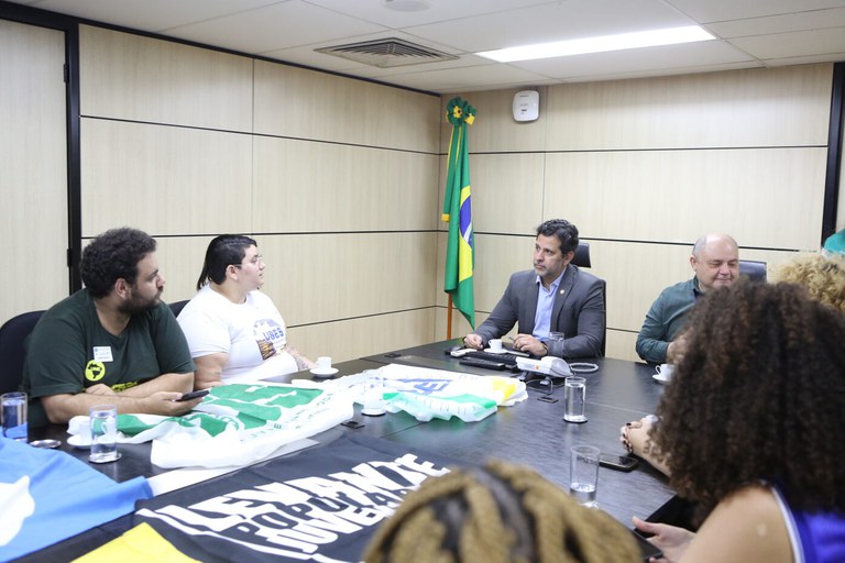 Os estudantes foram recebidos pelo secretário executivo adjunto do MEC, Leonardo Barchini; o secretário de Articulação Intersetorial e com os Sistemas de Ensino, Maurício Holanda; o chefe de gabinete da Secretaria de Educação Continuada, Alfabetização de Jovens e Adultos, Diversidade e Inclusão (Secadi), Rodrigo Luppi; o assessor de gabinete da Secadi, Cleber Vieira; o coordenador-Geral de Políticas Educacionais para a Juventude, Yann Evanovick; e o coordenador-Geral de Equidade Educacional, Maurício Ernica.