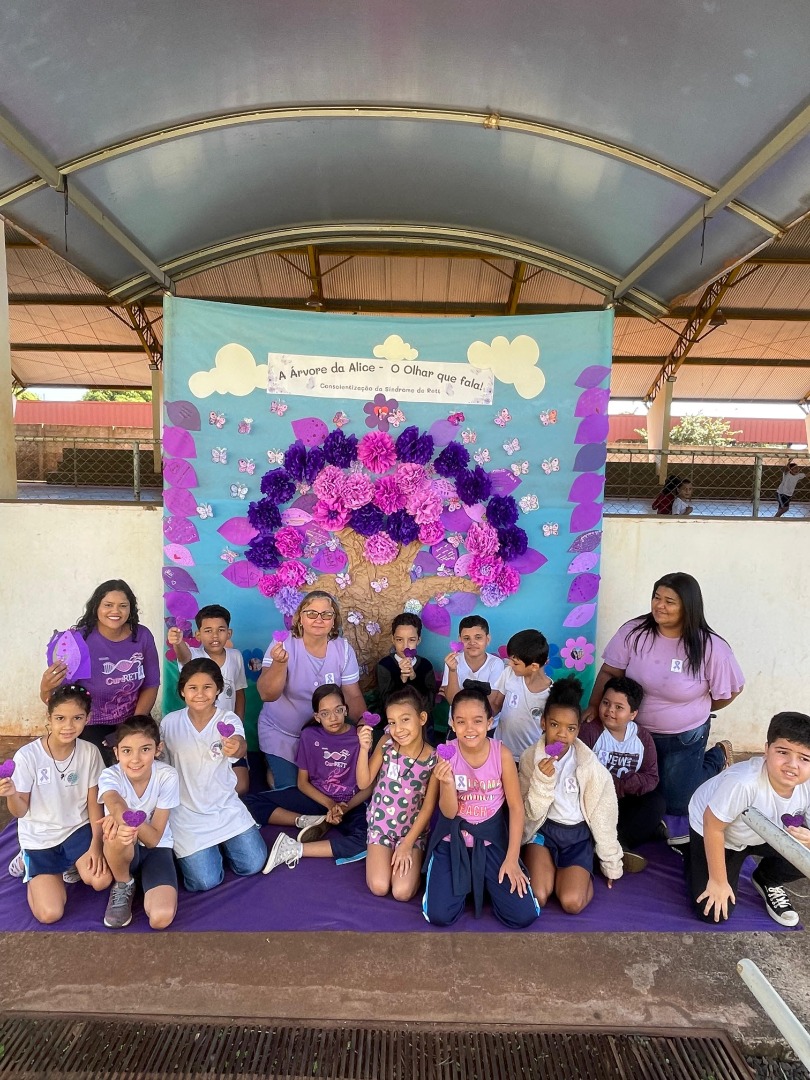 Região Centro-Oeste – Na Escola Municipal de Ensino Fundamental Antônio Eustáquio da Silveira, em São Simão (GO), o projeto A Árvore da Alice – O Olhar que Fala foi realizado durante o Outubro Roxo, com ações de conscientização sobre a Síndrome de Rett, um distúrbio genético e neurológico raro que afeta principalmente meninas, causando atraso no desenvolvimento. As atividades envolveram estudantes da educação infantil ao 3º ano do ensino fundamental, promovendo empatia, inclusão e respeito às diferenças.
