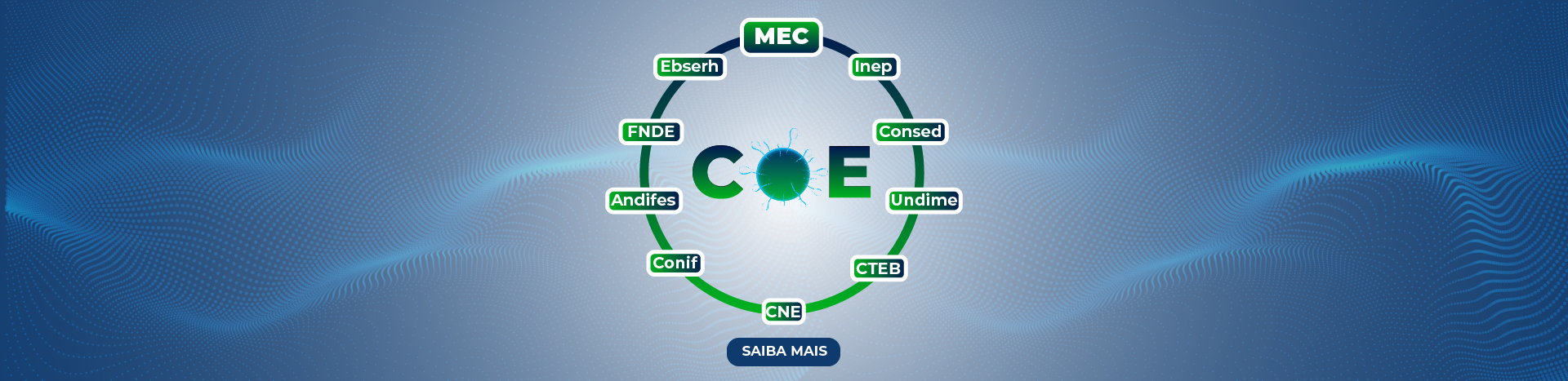 O Comitê Operativo de Emergência (COE) do Ministério da Educação, tem por objetivo discutir assuntos complexos que podem direta, ou indiretamente, impactar na política educacional brasileira. Dentre esses assuntos, atualmente, pode-se destacar as tratativas acerca das demandas relacionadas ao acometimento do País pela epidemia do coronavírus e, consequentemente, a busca constante por soluções para mitigar os reflexos e impactos da pandemia na esfera educacional.