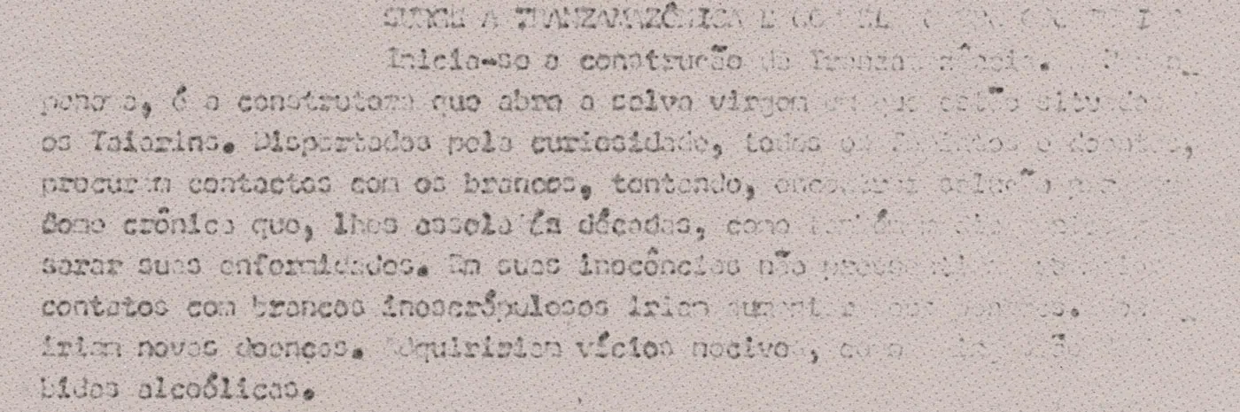 Outro trecho do mesmo relatório, intitulado “Surge a Transamazônica e com ela outro oportunista”, cita a Paranapanema como “a construtora que abre a selva virgem onde estão situados os Tenharim”. Ressalta ainda que, pela curiosidade, falta de alimentos e de acesso à saúde, os indígenas “procuraram contato com os brancos” e a partir disso contraíram doenças e “vícios” como a dependência em bebidas alcoólicas. Além disso, alguns Tenharim teriam sido remunerados apenas com utensílios de cozinha.