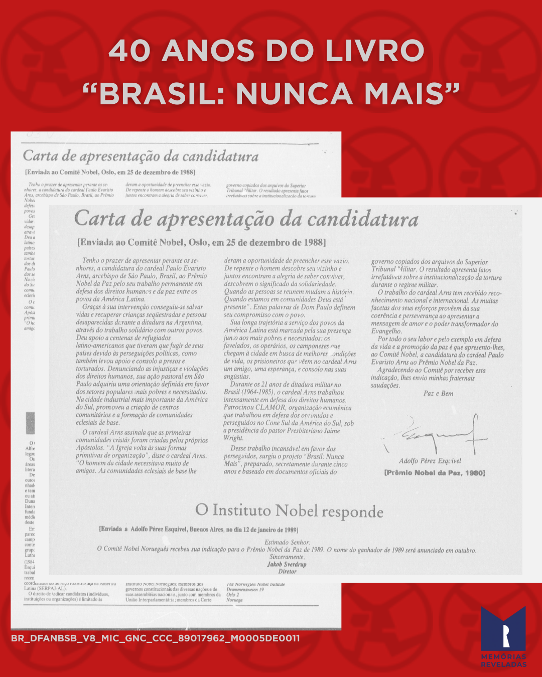 Fruto de um intenso e clandestino trabalho realizado durante a ditadura, entre os anos de 1979 e 1985, o livro é a síntese para ampla divulgação de 12 volumes de informação, sistematizadas a partir de 710 processos judiciais, totalizando “cerca de 850 mil cópias em papel e 543 rolos de microfilmes”. Um trabalho corajoso, envolvendo uma grande equipe, com a coordenação de D. Paulo Evaristo Arns e do reverendo James Wright.