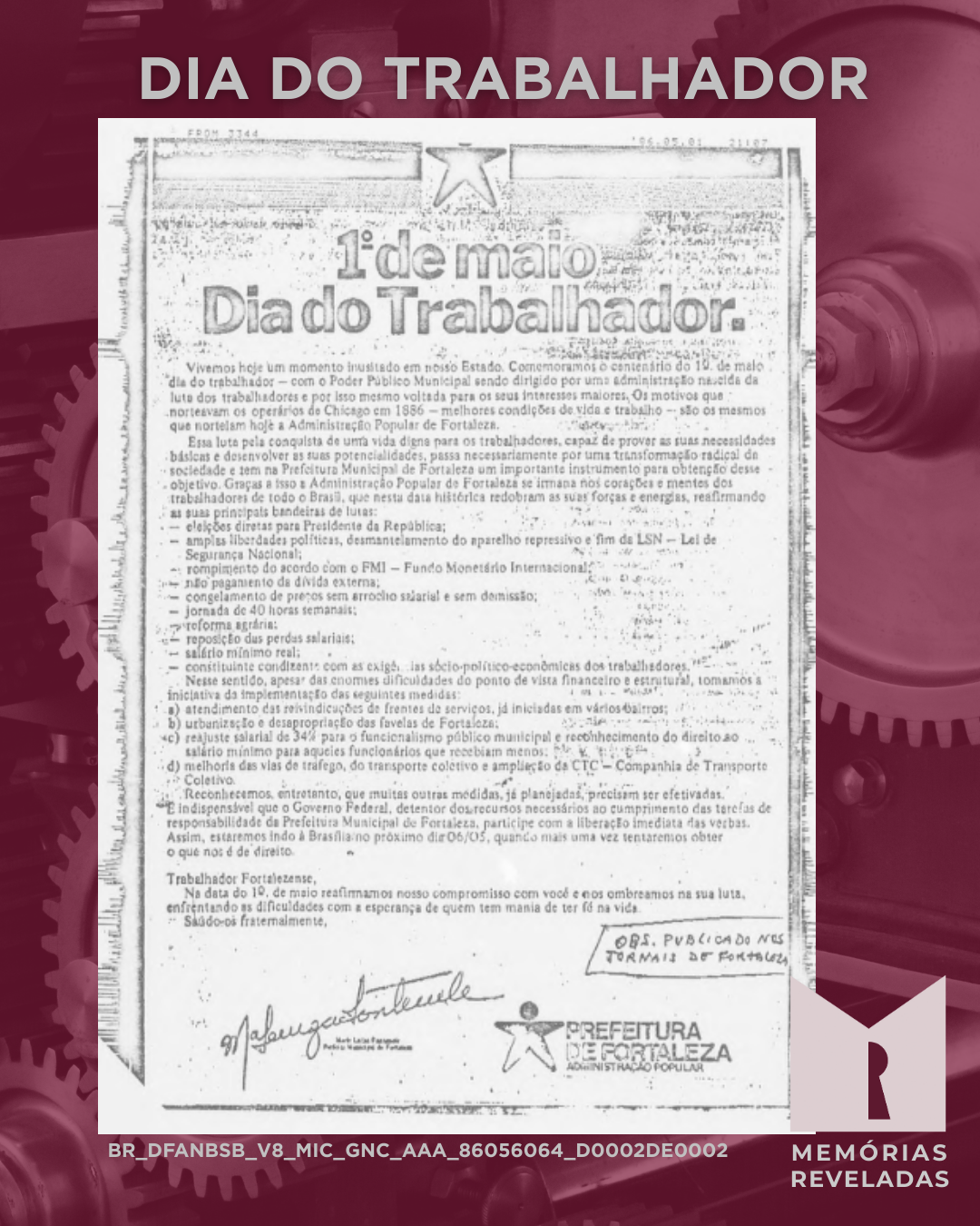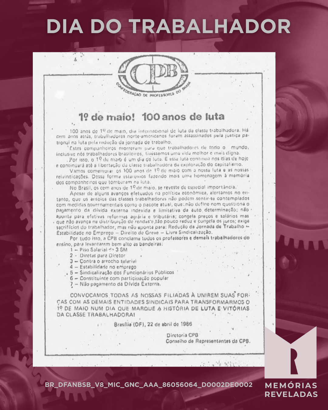 A partir dos cartazes em destaque, podemos ver como a questão da redução da jornada de trabalho sempre foi uma preocupação presente entre a classe trabalhadora. No centenário do Dia do Trabalhador, em pleno contexto de redemocratização em 1986, centrais sindicais, sindicatos, partidos e movimentos sociais encampavam a regulamentação da jornada de trabalho de 40 horas semanais como um direito a ser conquistado e garantido, ao lado de pautas como a garantia do salário-mínimo, da estabilidade no emprego, do salário-desemprego, do fim das demissões sumárias, do combate ao arrocho salarial, e outras pautas ainda mais amplas como a luta pela reforma agrária e pela participação popular na Constituinte.