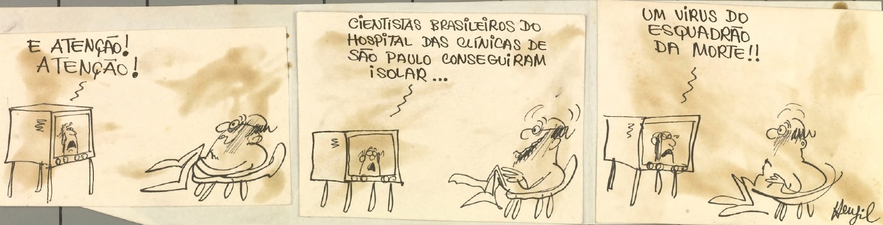 Charge de Henfil para o jornal Correio da Manhã, em finais da década de 1960, denuncia o início do funcionamento do Esquadrão da Morte em São Paulo