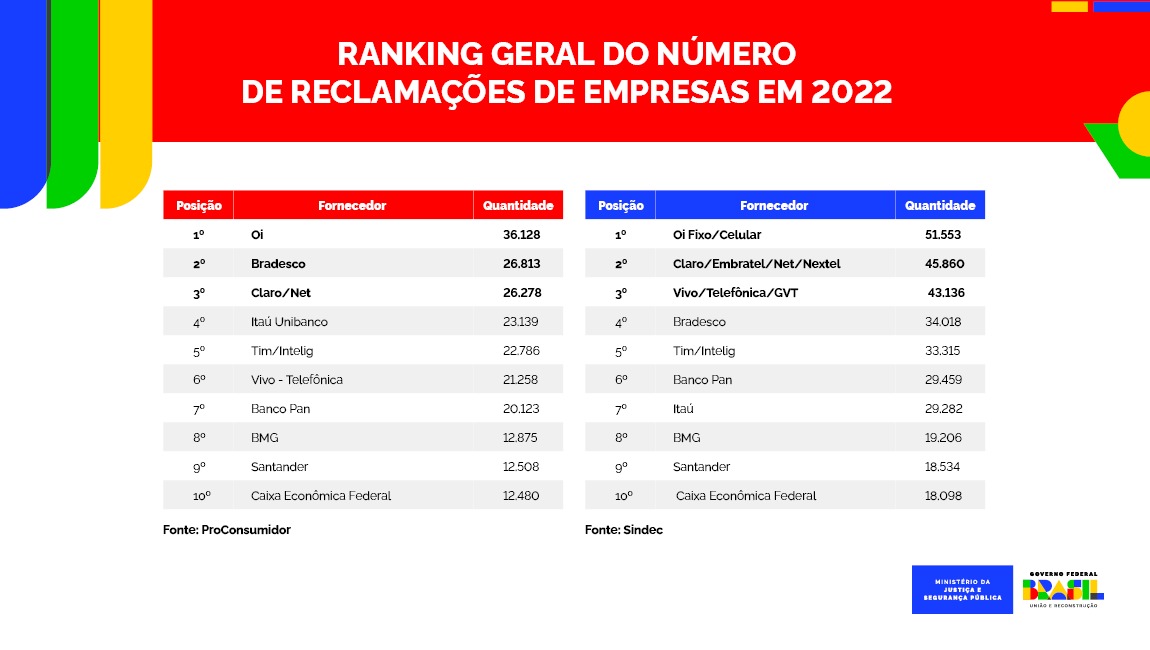 Os setores de telecomunicações e serviços financeiros continuam liderando o ranking dos serviços com o maior número de reclamações no país. Os dados são do consumidor.gov.br, plataforma de registro de reclamações dos consumidores; bem como do Sindec e ProConsumidor, canais utilizados pelos Procons e Defensorias Públicas de todo o país.
