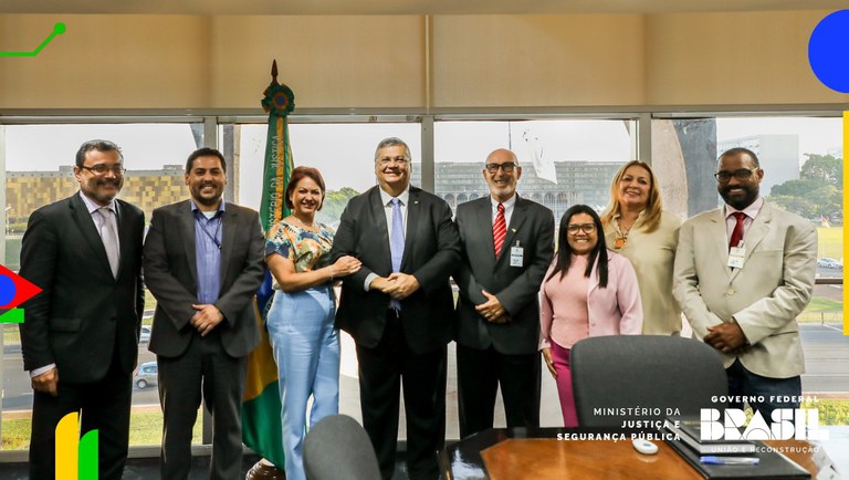 Brasília, 20/09/2023 - O ministro da Justiça e Segurança Pública, Flávio Dino, e o secretário Nacional de Políticas Penais (Senappen), Rafael Velasco, receberam os presidentes da Associação Nacional de Técnicos e Especialistas Penais (Anatesp) dos estados do Rio de Janeiro, Paraná, Mato Grosso e Minas Gerais. O objetivo do encontro foi fortalecer a luta do sindicato que busca regulamentar a carreira no âmbito da Política Penal Federal.