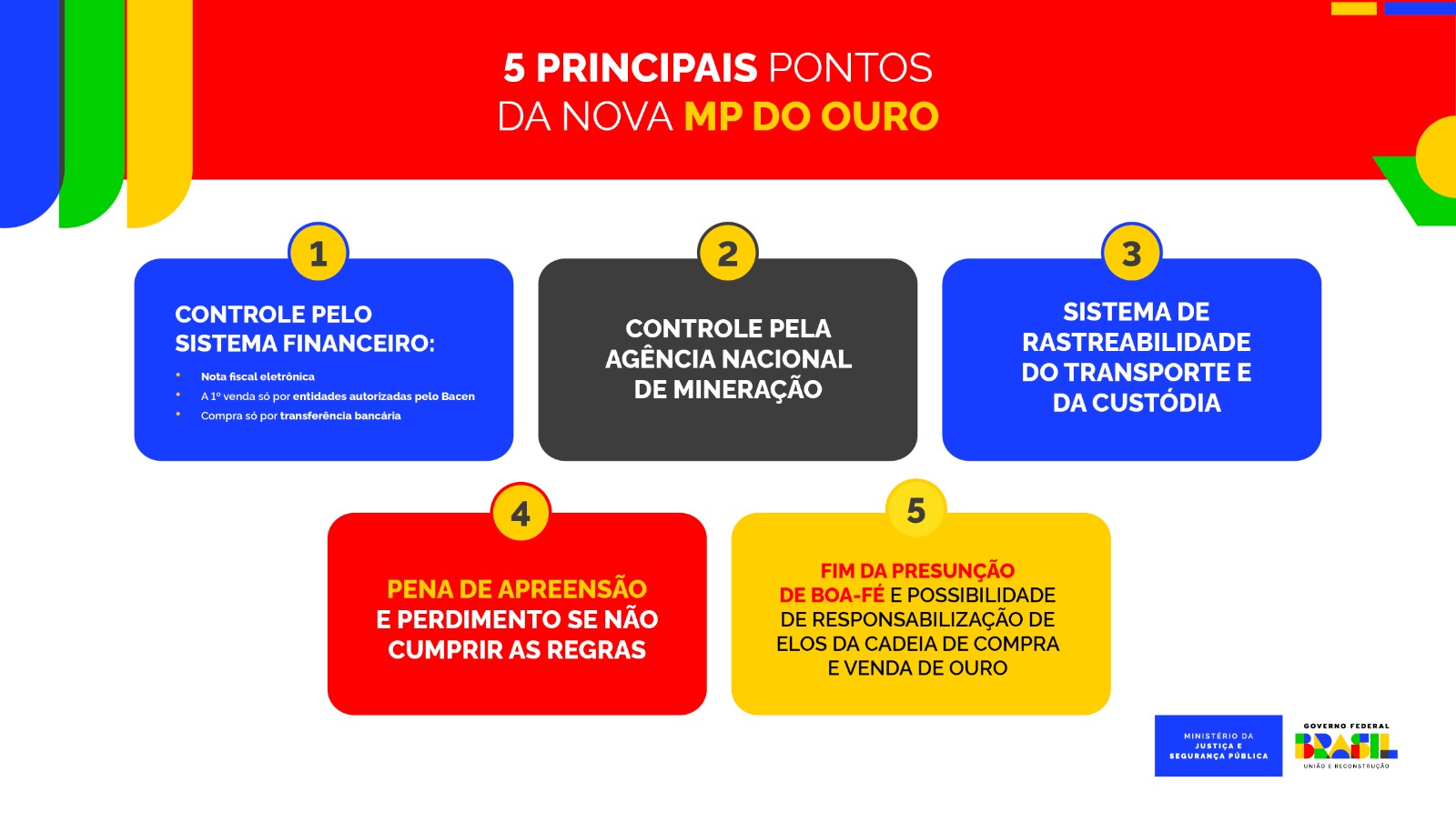 Com a implementação da MP do Ouro espera-se fortalecer o combate ao garimpo ilegal, como, também, as ações da ANM, com a criação de sistemas para controle eficazes da cadeia produtiva do ouro, exibindo-se, assim, informações de todos os envolvidos.