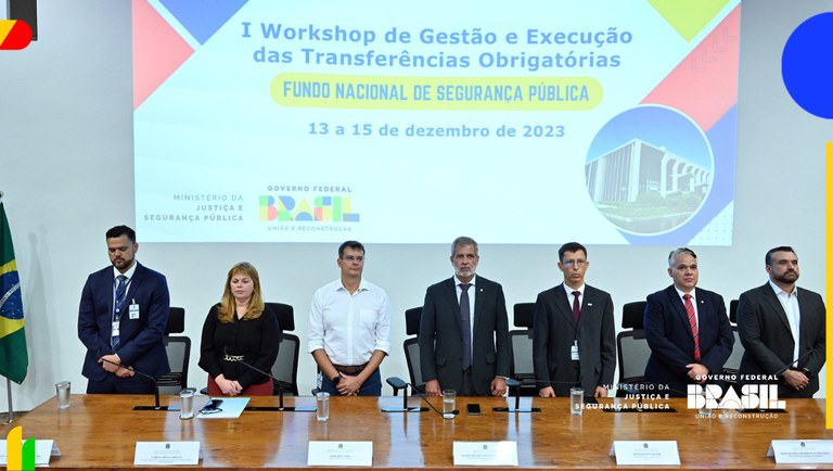 O 1º Workshop de Gestão e Execução das Transferências Obrigatórias do Fundo Nacional de Segurança Pública acontecerá até sexta-feira (15). Durante os três dias da programação, gestores debaterão a importância do Fundo Nacional de Segurança Pública no financiamento de ações de segurança pública; transferências obrigatórias do FNSP: Fundo a Fundo; Transferegov.br - Módulo Fundo a Fundo; governança em segurança pública: o caso dos planos de ação 2023; o olhar do Controle Interno sobre a Transferência Fundo a Fundo; aspectos relevantes da prestação de contas dos recursos; Sistema Gestão Ágil; fórum de compartilhamento de experiências do FNSP; e ComprasSusp.