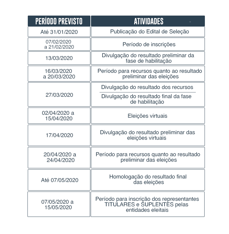 Inscrições e votações serão virtuais, permitindo participação ampla da sociedade. No momento da eleição, cada eleitor poderá votar em até três candidatos, sendo escolhidas para as vagas as três organizações da sociedade civil ou conselhos de políticas públicas que obtiverem o maior número de votos. A votação é aberta para qualquer pessoa maior de 16 anos, mediante cadastro na página http://www.gov.br/mj/pt-br/sua-protecao/trafico-de-pessoas , e estará disponível no período de 02/04/2020 a 15/04/2020.