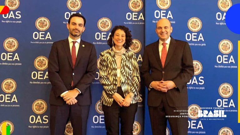 A titular da Senad/MJSP também se reuniu com o secretário de Segurança Multidimensional da OEA, Ivan Marques. O brasileiro atualmente coordena a área responsável por promover a cooperação entre os estados-membros da Organização, o Sistema Interamericano e outros organismos do Sistema Internacional para avaliar, prevenir, enfrentar e responder eficazmente às ameaças à segurança da região.