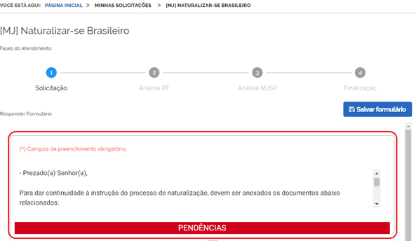 ATENÇÃO! Caso o processo esteja na fase de análise da Polícia Federal ou Ministério da Justiça, o cidadão não poderá editar nenhuma informação.