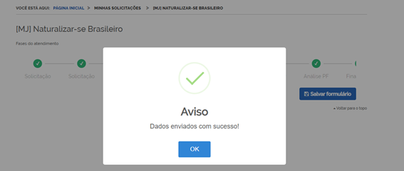6. E, por fim, esta tela aparecerá como confirmação do envio dos dados.
