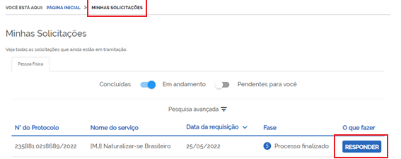 1. Acesse “Minhas solicitações” e clique no botão “Responder”.