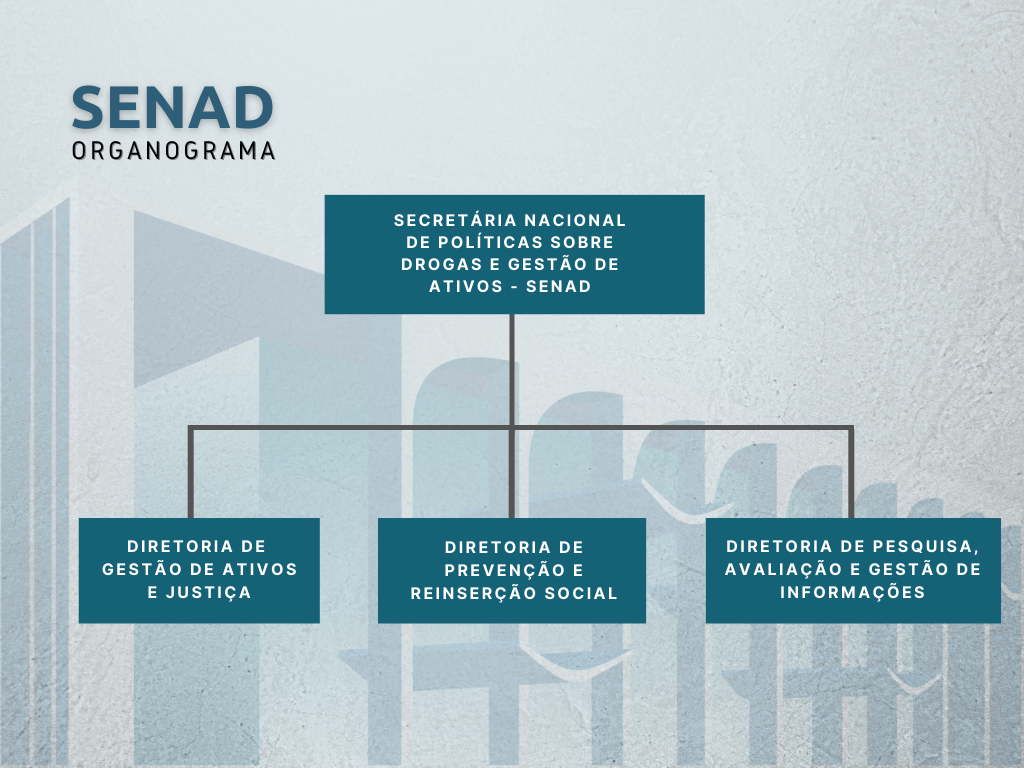 Quanto à sua estrutura, a SENAD conta com três Diretorias, quais sejam:
