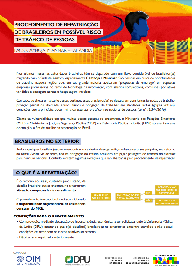 Procedimento de Repatriação de Brasileiros em Possível Risco de Tráfico de Pessoas - Laos, Camboja, Mianmar e Tailândia (2023)