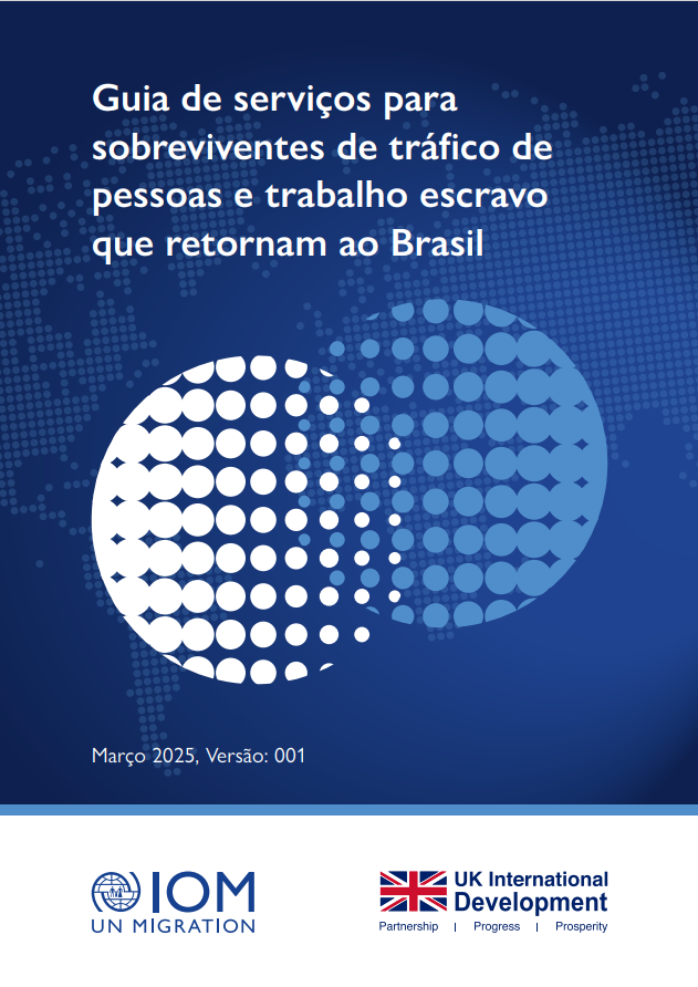 O Guia de Serviços para Sobreviventes de Tráfico de Pessoas e Trabalho Escravo que retornam ao Brasil fornece informações sobre organizações no Brasil que podem prestar serviços de reintegração e apoio ao retorno de sobreviventes potenciais e confirmados de tráfico de pessoas e trabalho forçado.