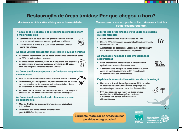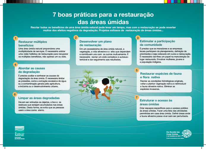 A cada ano, o Secretariado da Convenção sugere um tema para as ações desenvolvidas pelos países membros da Convenção de Ramsar e para o ano de 2023 o tema é “É a hora da restauração das áreas úmidas”, que ressalta a importância da preservação destas regiões, tão importantes para as funções ecológicas e para garantir a saúde e o bem-estar das comunidades que dependem delas direta e indiretamente.