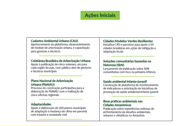 O Programa Cidades Verdes Resilientes foi insituído pelo Decreto n. 12.041 de 05 de junho de 2024: https://www.planalto.gov.br/ccivil_03/_ato2023-2026/2024/decreto/d12041.htm e tem como objetivo "aumentar a qualidade ambiental e a resiliência das cidades brasileiras diante dos impactos da mudança do clima, por meio da integração de políticas urbanas, ambientais e climáticas, estimulando as práticas sustentáveis e a valorização dos serviços ecossistêmicos do verde urbano".