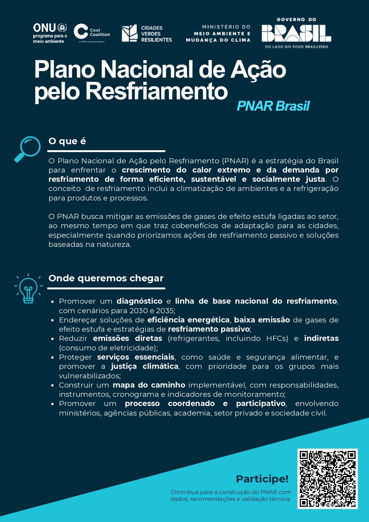 O Plano Nacional de Ação pelo Resfriamento (PNAR) será uma bússola, guiando a estratégia brasileira para lidar com o aumento do calor extremo e da demanda por resfriamento de forma eficiente, sustentável e socialmente justa.