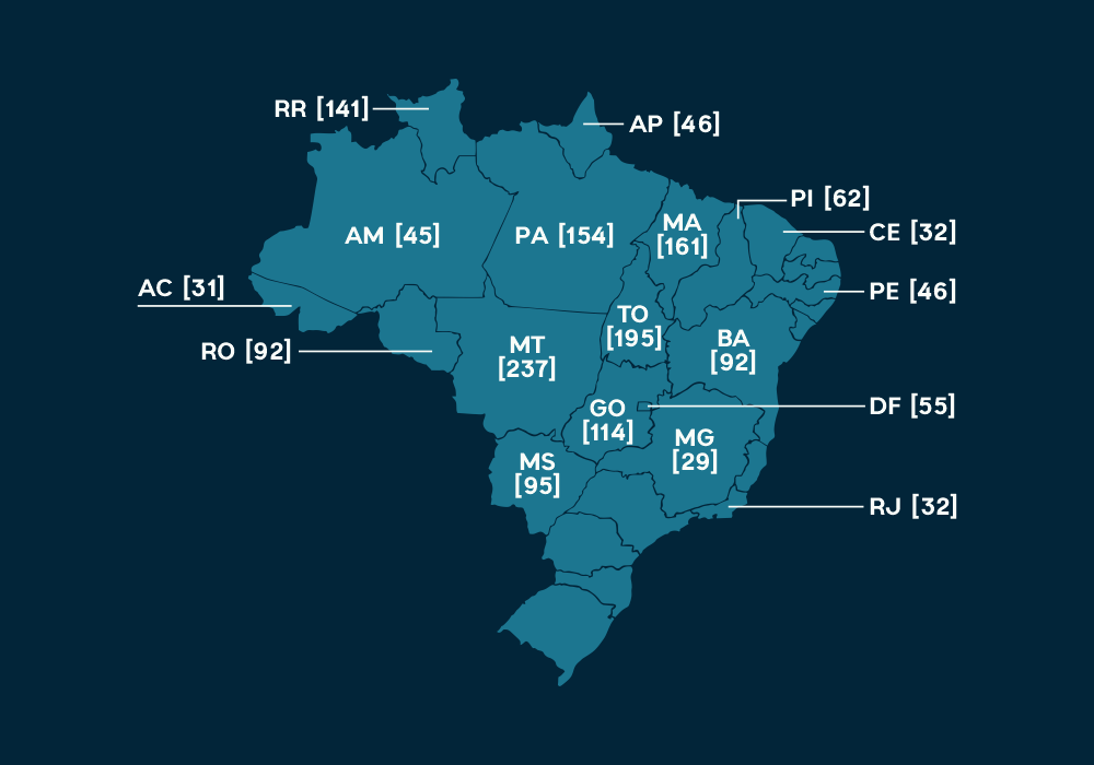 Os novos brigadistas temporários estarão divididos em 83 brigadas espalhadas pelo país, abrangendo os estados das regiões norte, nordeste, centro-oeste e Sudeste. A distribuição foi feita entre estas regiões visando atendimento em pontos estratégicos onde há maior incidência de incêndios florestais na época de seca.