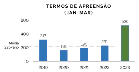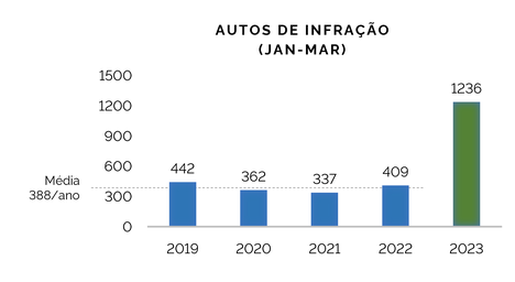 Mesmo com a priorização de operações na região amazônica, as autuações ambientais aumentaram 78% em todo o país na comparação do primeiro trimestre deste ano com a média para o mesmo período nos anos de 2019 a 2022. A retomada das atribuições do Ibama e o comando do combate ao desmatamento pela área ambiental foram decisivos para os resultados obtidos, apesar do baixo número de fiscais.
