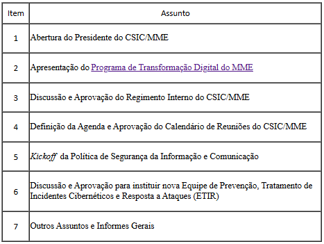 Local: Sala n° 652, 6° andar, Ministério Minas e Energia