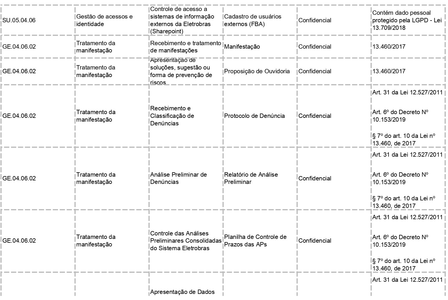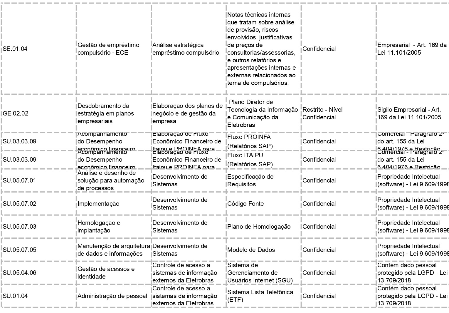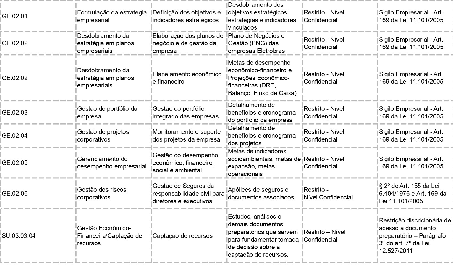 Informações da Eletrobras com restrição de acesso por outras hipóteses legais