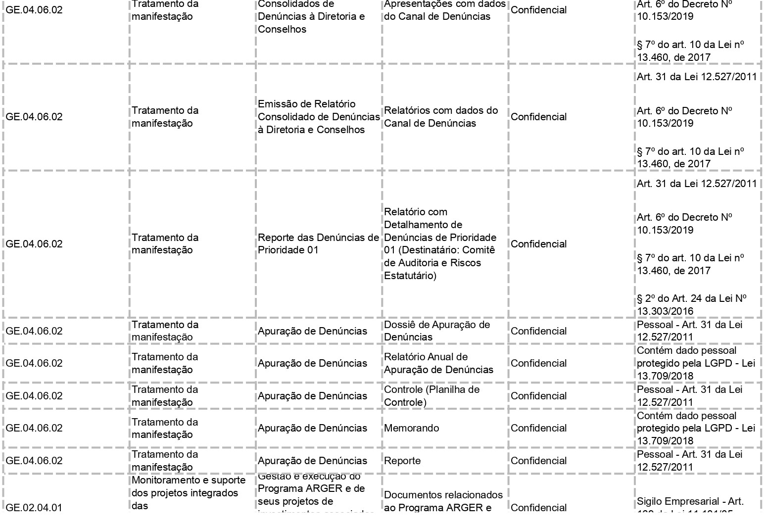 *Restrição de acesso por outras hipóteses legais (Art. 22 - Lei nº 12.527/2011). Restrição definida segundo diretrizes para classificação da informação quanto à restrição de acesso e ao sigilo, estabelecidas na Norma Interna EDO-03 - Classificação da Informação.