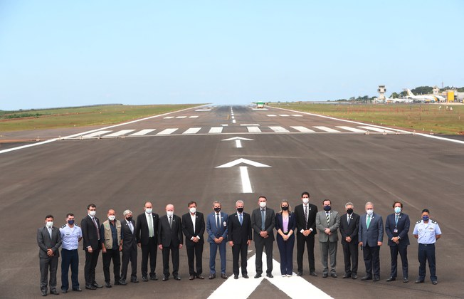 O presidente da República, Jair Bolsonaro, e o Ministro de Minas e Energia, Bento Albuquerque, participaram nesta quarta-feira (7/4) da entrega da obra de ampliação da pista do Aeroporto Internacional de Foz do Iguaçu e da cerimônia de transmissão de cargo de diretor-geral brasileiro de Itaipu Binacional, de Joaquim Silva e Luna para João Francisco Ferreira.