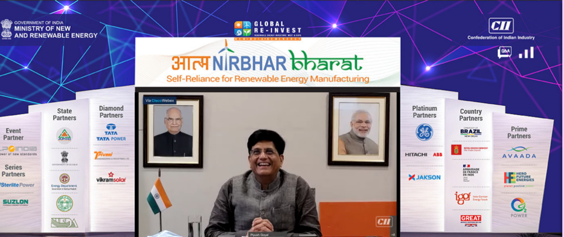 Ministro indiano durante a D igital Conference & Exhibition on Self-Reliance for Renewable Energy Manufacturing