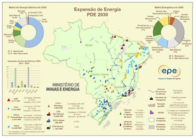 O PDE 2030 indica as perspectivas da expansão do setor de energia no horizonte de dez anos (2021 – 2030) dentro de uma visão integrada para os diversos energéticos. O planejamento foi elaborado pela Empresa de Pesquisa Energética (EPE) sob as diretrizes e o apoio das Secretarias de Planejamento e Desenvolvimento Energético (SPE) e de Petróleo, Gás Natural e Biocombustíveis (SPG) do Ministério de Minas e Energia (MME).