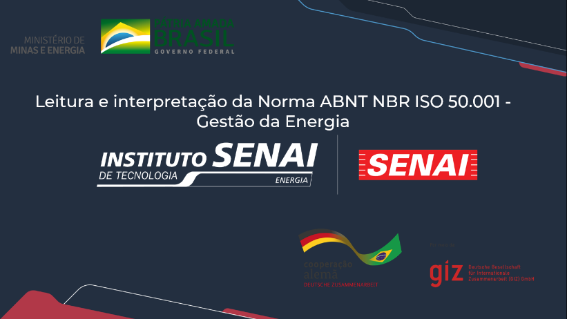 A capacitação sobre a norma ISO 50.001 para o SENAI foi realizada como um dos passos da implementação do sistema de gestão de energia (SGE) no edifício-sede do Ministério de Minas e Energia (MME) e Ministério do Turismo (MTUR), na Esplanada dos Ministérios. O objetivo do curso foi capacitar a equipe de gestão dos ministérios, chamada de Comissão Interna de Conservação de Energia (CICE), na leitura e implementação da norma.