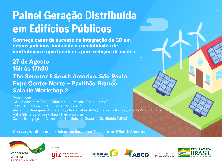 Evento organizado em em 27 de agosto de 2019 pelo projeto em parceria com a Associação Brasileira de Geração Distribuída (ABGD) e a The Smarter E South America com o intuito de incentivar órgãos públicos a reduzirem os gastos com energia elétrica a partir da adoção da geração distribuída. O painel integrou a programação da conferência The Smarter E South America, em São Paulo e apresentou boas experiências já implantadas no Brasil.