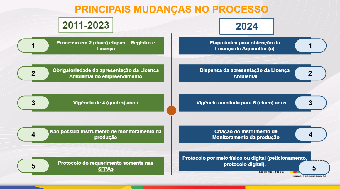 Veja abaixo as principais mudanças realizadas pelo MPA no processo de Licença de Aquicultor(a) para facilitar o requerimento: