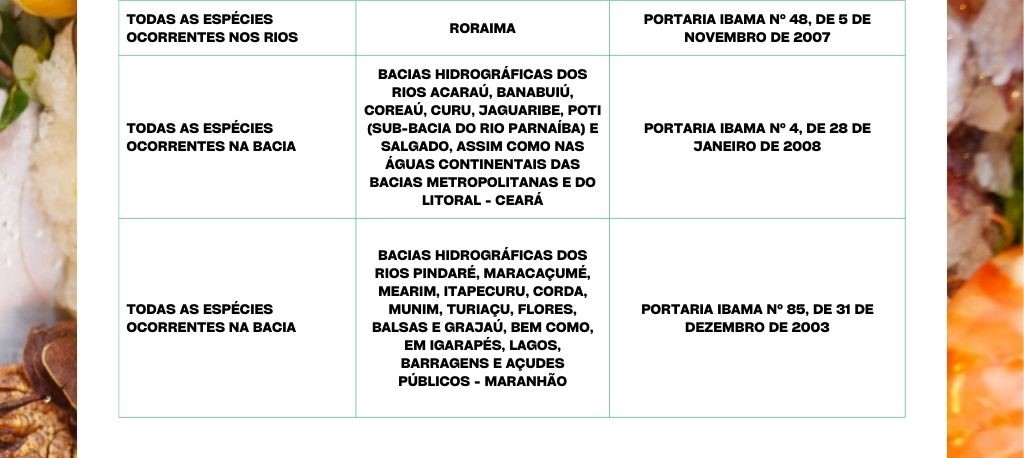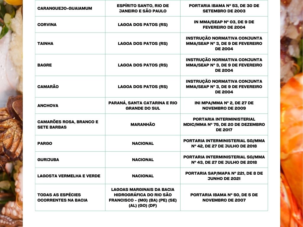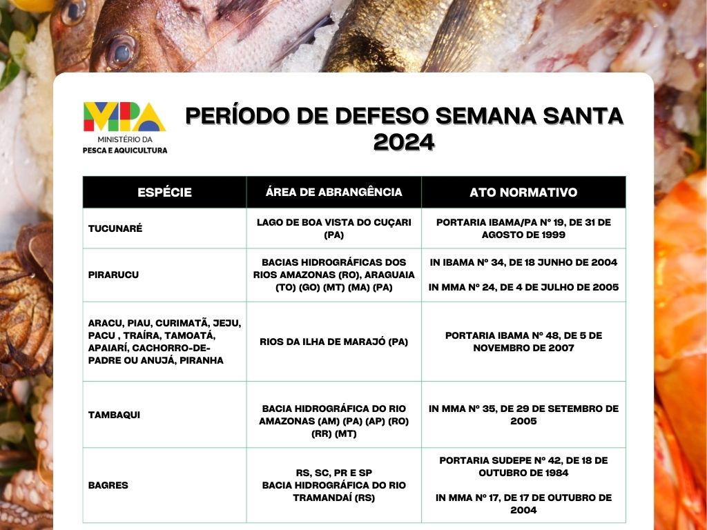 Peixes, camarões, caranguejos e lagostas em defeso no período de 24 a 30 de março de 2024