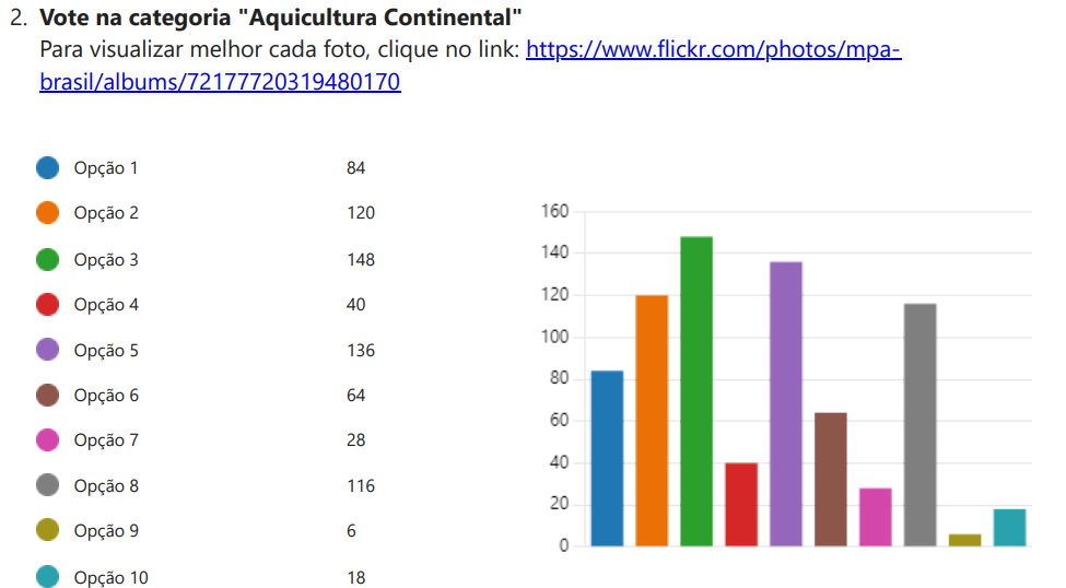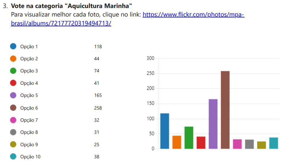 As três fotos mais votadas de cada categoria serão premiadas, e a mais votada das duas categorias estará na capa do Boletim da Aquicultura em águas da União, que será lançado em outubro deste ano.
