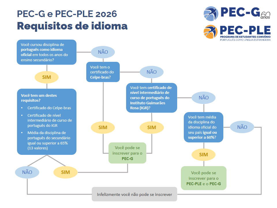 - Obs.: Se você precisa aprender o idioma português e prestar o exame Celpe-Bras no Brasil, você deverá se inscrever para o PEC-PLE e para o PEC-G. Nesse caso, você também deverá decidir suas opções de vagas para o curso do PEC-PLE.
