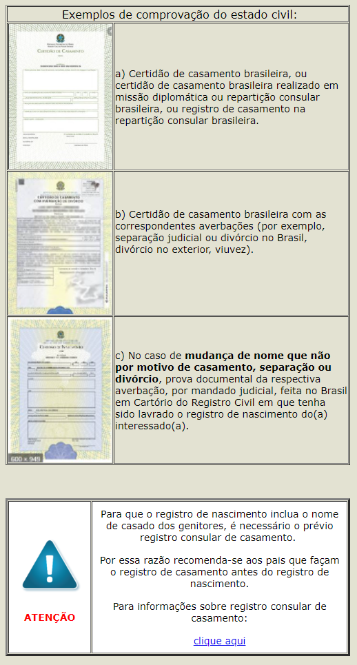 b) Certidão de nascimento brasileira (se casado com o genitor brasileiro); ou