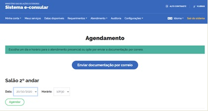 c. To schedule the service, depending on the service in question, it is necessary to send by the system all the documents required for each service (upload the images). After the evaluation and validation of the documents by the Consulate, you can schedule your service or check the instructions for sending by mail or collection / drop box.