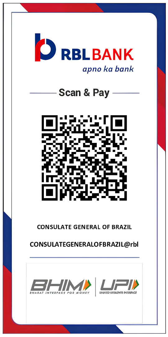 Fees showed above apply to Indian citizens. If you are a citizen of another nationality, residing in the jurisdiction of this Consulate General (Maharashtra, Goa and Karnataka), before making a payment, please contact the Consulate through the email: visa.mumbai@itamaraty.gov.br