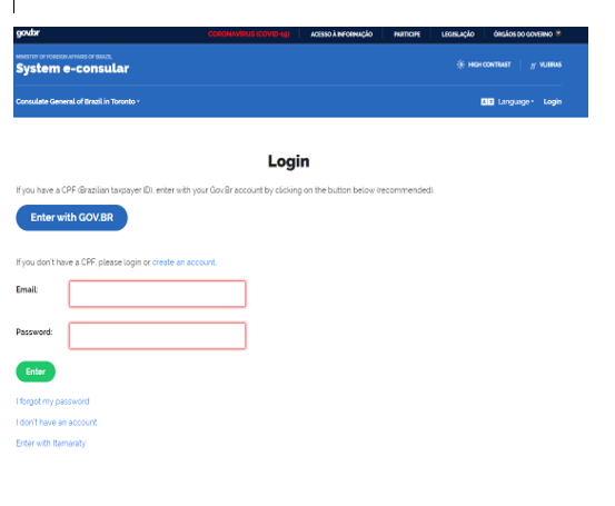 Entre no sistema e-consular (ec-toronto.itamaraty.gov.br) e faça seu cadastro. ( para acessar vídeo de como criar uma conta no e-consular, clique aqui)